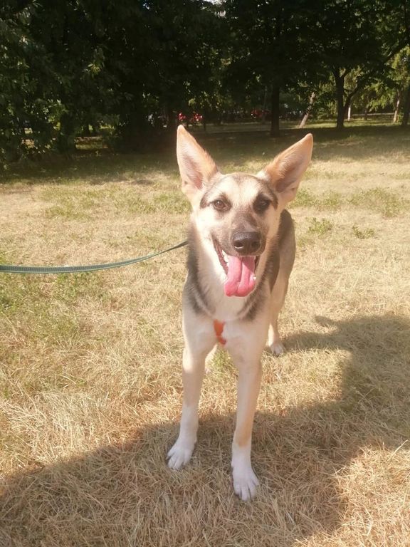 Айрис около года и она буквально выросла за решёткой. Это очень робкая собака, при первой встрече не побежит к вам и не будет вилять хвостиком. Однако, когда Айрис привыкнет к вам - этот застенчивый ушастик откроется и станет невероятно ласковой девочкой.
