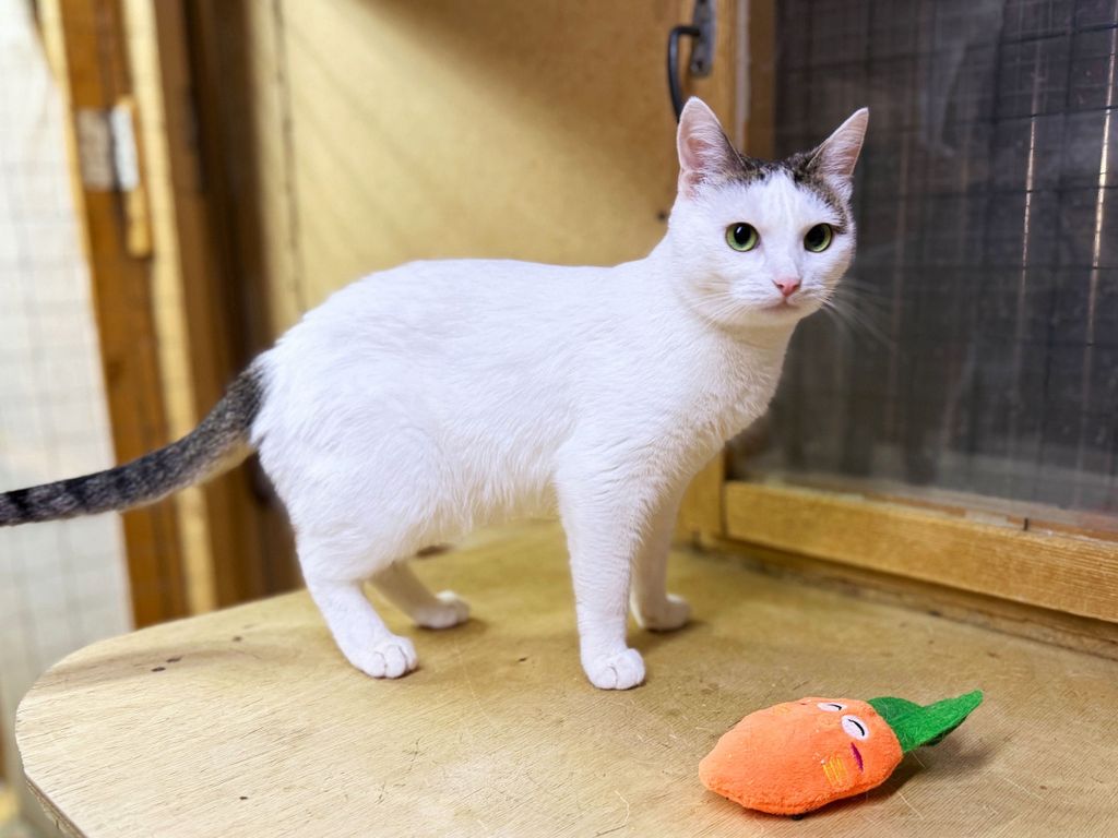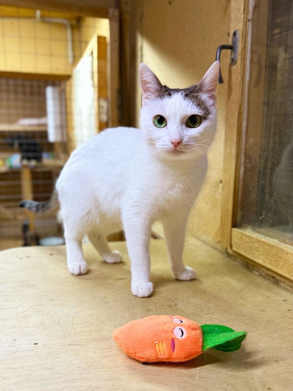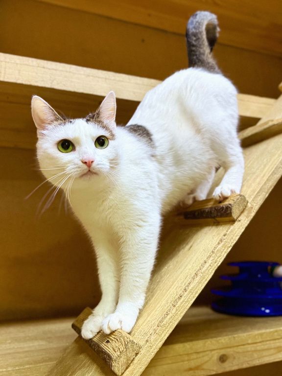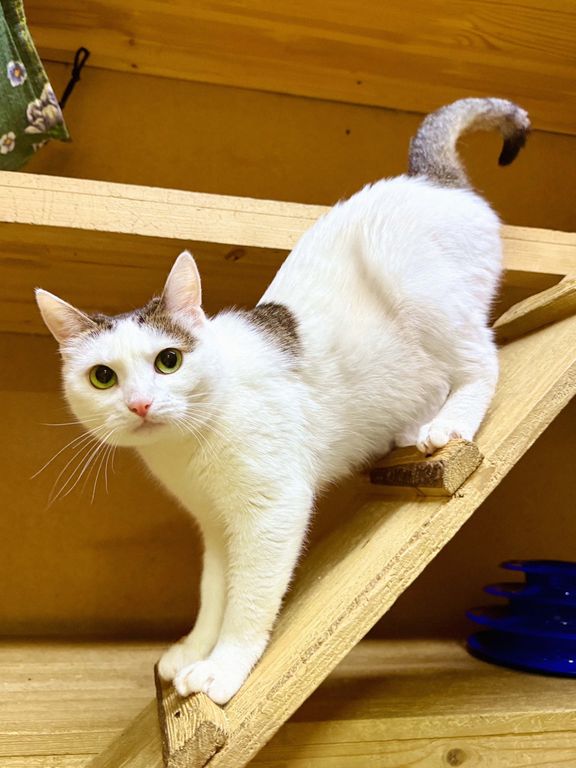 Лиса — ласковая белая кошечка с полосатыми пятнышками, родившаяся примерно в 2015 году. Поздней осенью 2025-го её вместе с двумя другими кошечками бывшие хозяева оставили замерзать на парковке в закрытых переносках. Попав в приют, Лиса сразу показала себя очень адаптивной кошечкой: она не испугалась новых людей и с первых же дней охотно принимала ласку, отвечая довольным мурчанием. Любимое место Лисы — человеческие колени, запрыгнув на которые, она моментально сворачивается тёплым хлебушком.