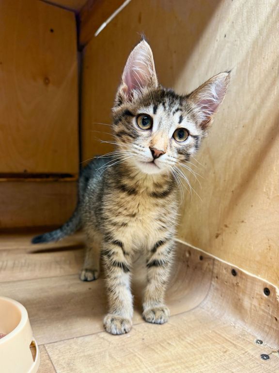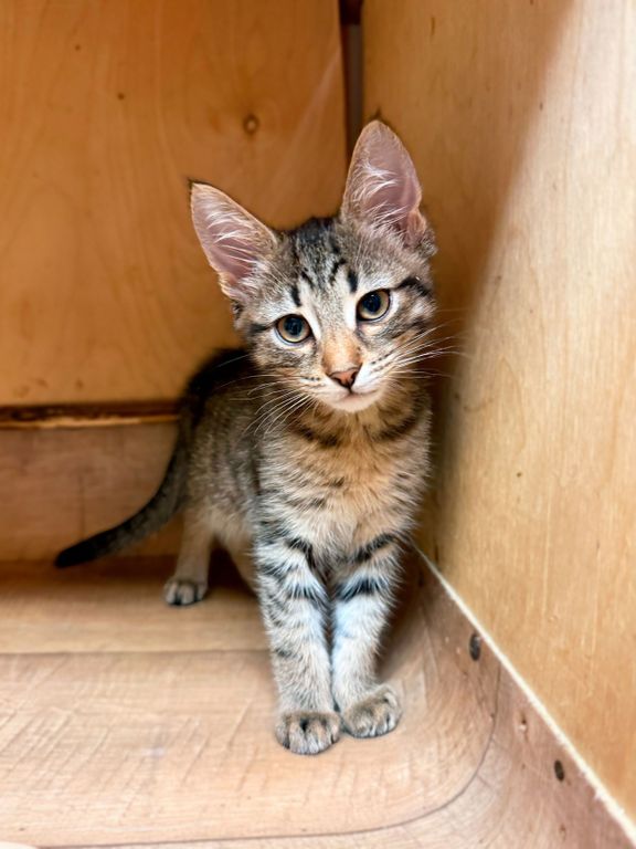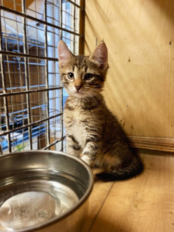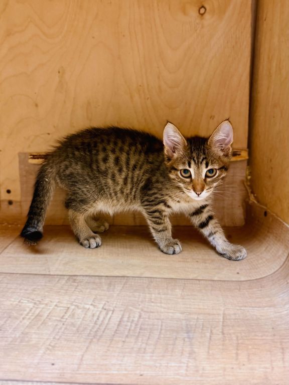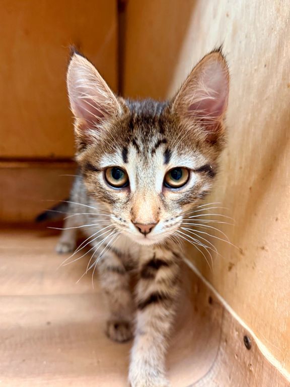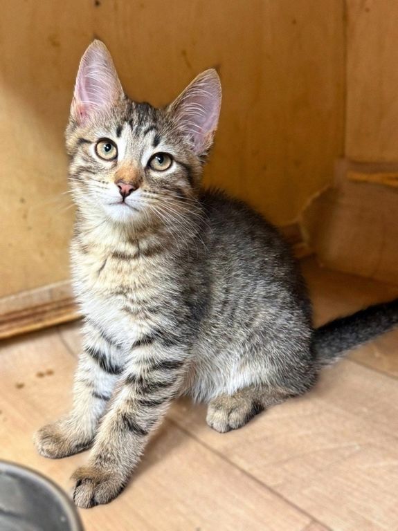 Рома — обаятельный и добрый полосатый котёнок, родившийся весной 2025 года. В приют «Искра» он поступил в апреле, еще совсем крошкой — вместе с сестрой и мамой, и теперь они втроем делят небольшую клеточку. Рома немного робеет перед новыми людьми, но очень хочет общаться — поэтому он всегда высовывает лапки из клетки, чтобы привлечь к себе внимание. Рома любит бегать и играть, но в приюте у него не так много возможностей для этого. Поэтому он очень нуждается в доме и заботливых хозяевах.