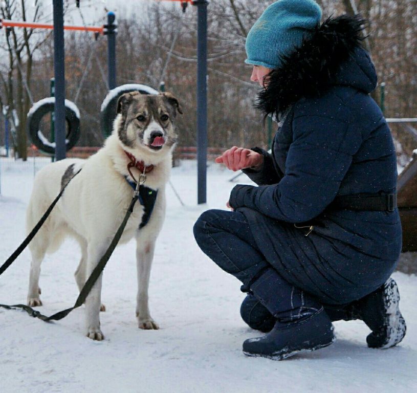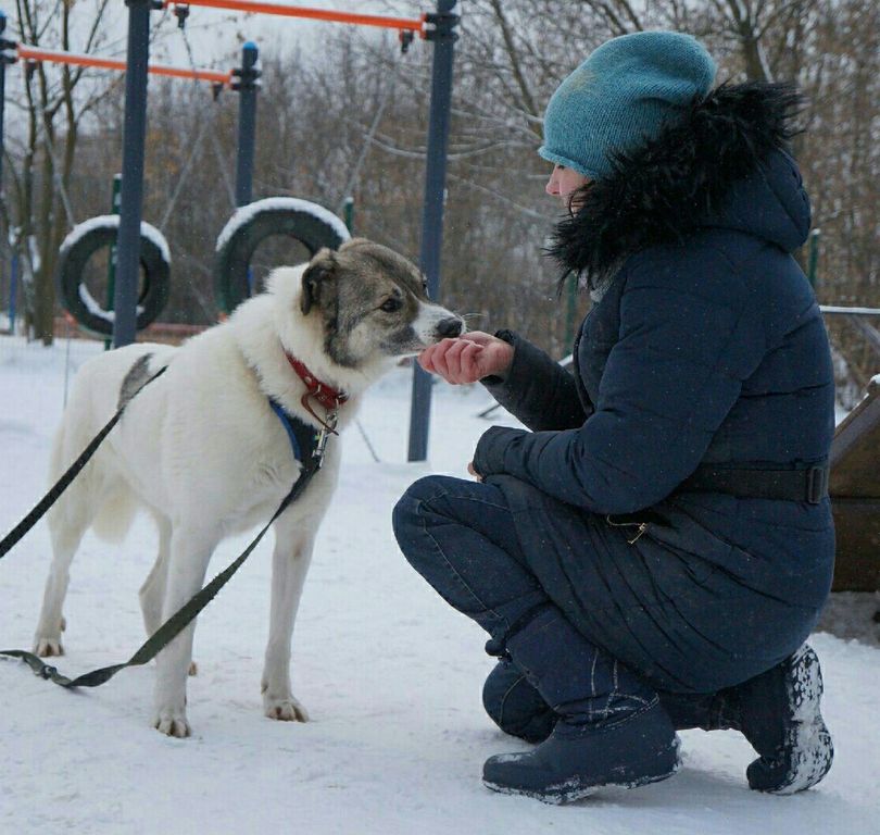 Наша Варя в прямом смысле белая и пушистая. Варя находится на социализации и ещё немного побаивается незнакомых ей людей. Проведя в приюте несколько лет только сейчас получила возможность регулярных прогулок в парке. Немного боязливая, не склонна к агрессии. Варя собака среднего возраста и комплекции. Привита, стерилизована. Продолжает социализироваться и ждёт в гости людей для знакомства.